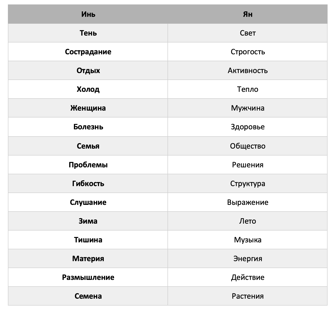 - Инь: пассивное, темное, холодное, спокойное. Например, ночь, луна, покой, потенциал.