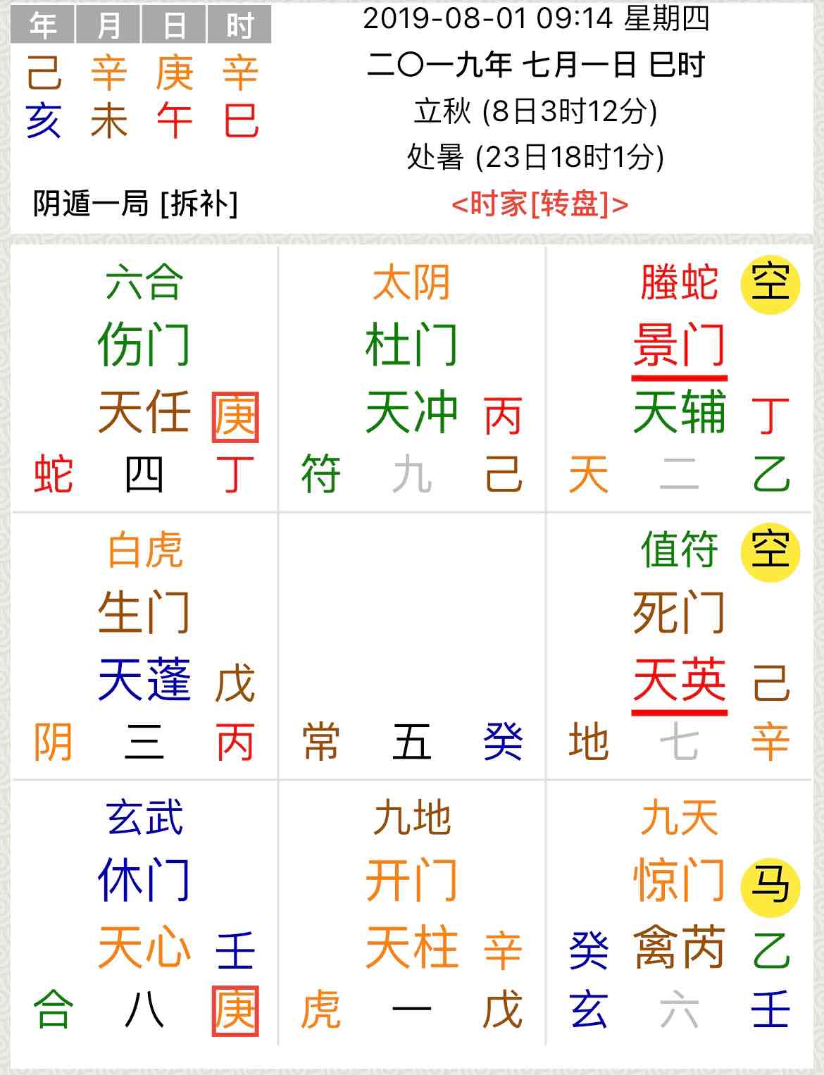 Расклад цимэнь на 01.08.2019, по которому было принято решение перенести поездку с 12.08.2019 на 13.08.2019: