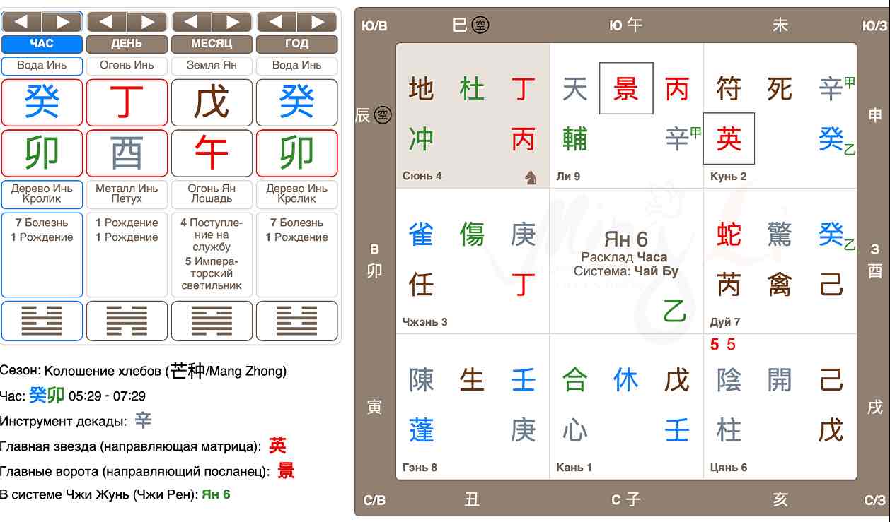Пример. Расклад 6 ян 癸卯 (08.06.2023 час 癸卯).
