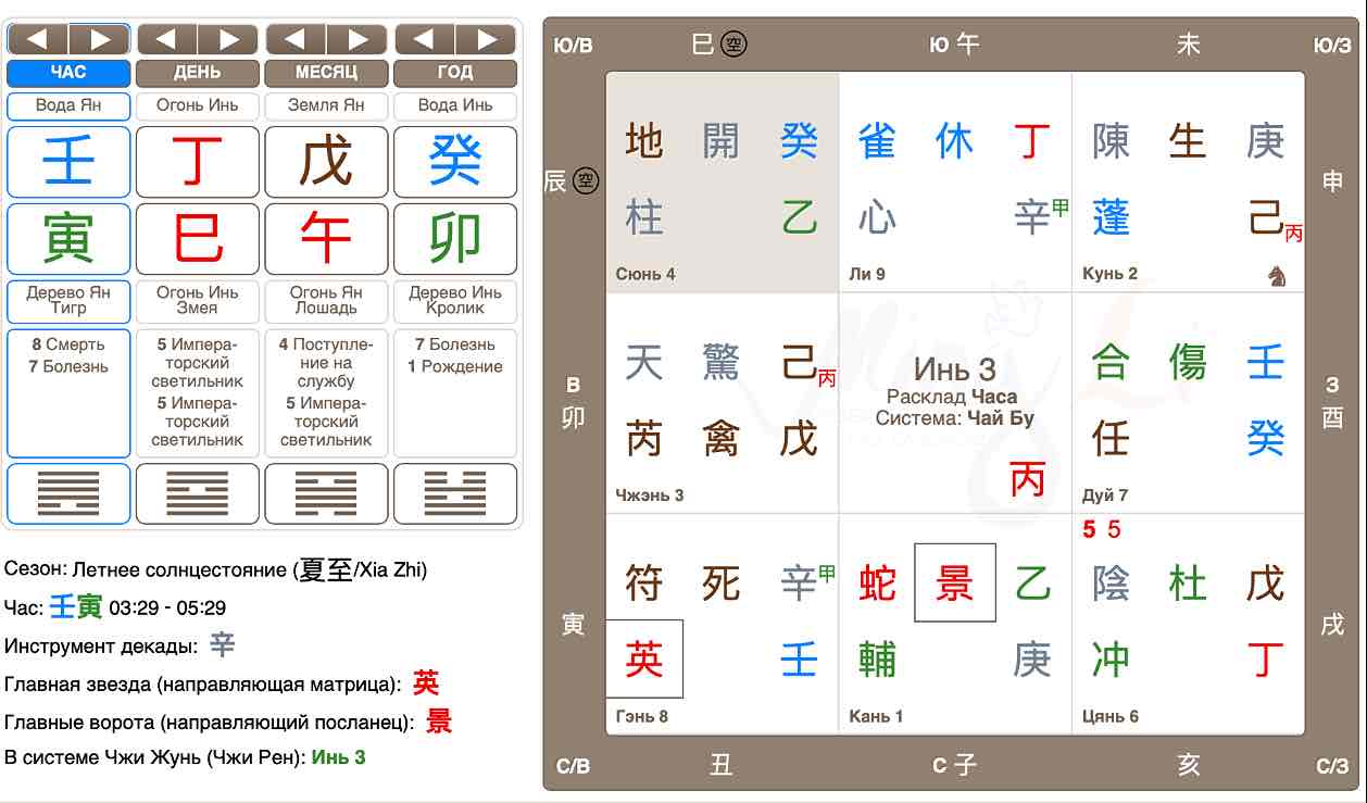 Пример. Расклад 3 инь 壬寅 (28.06.2023 час 壬寅).