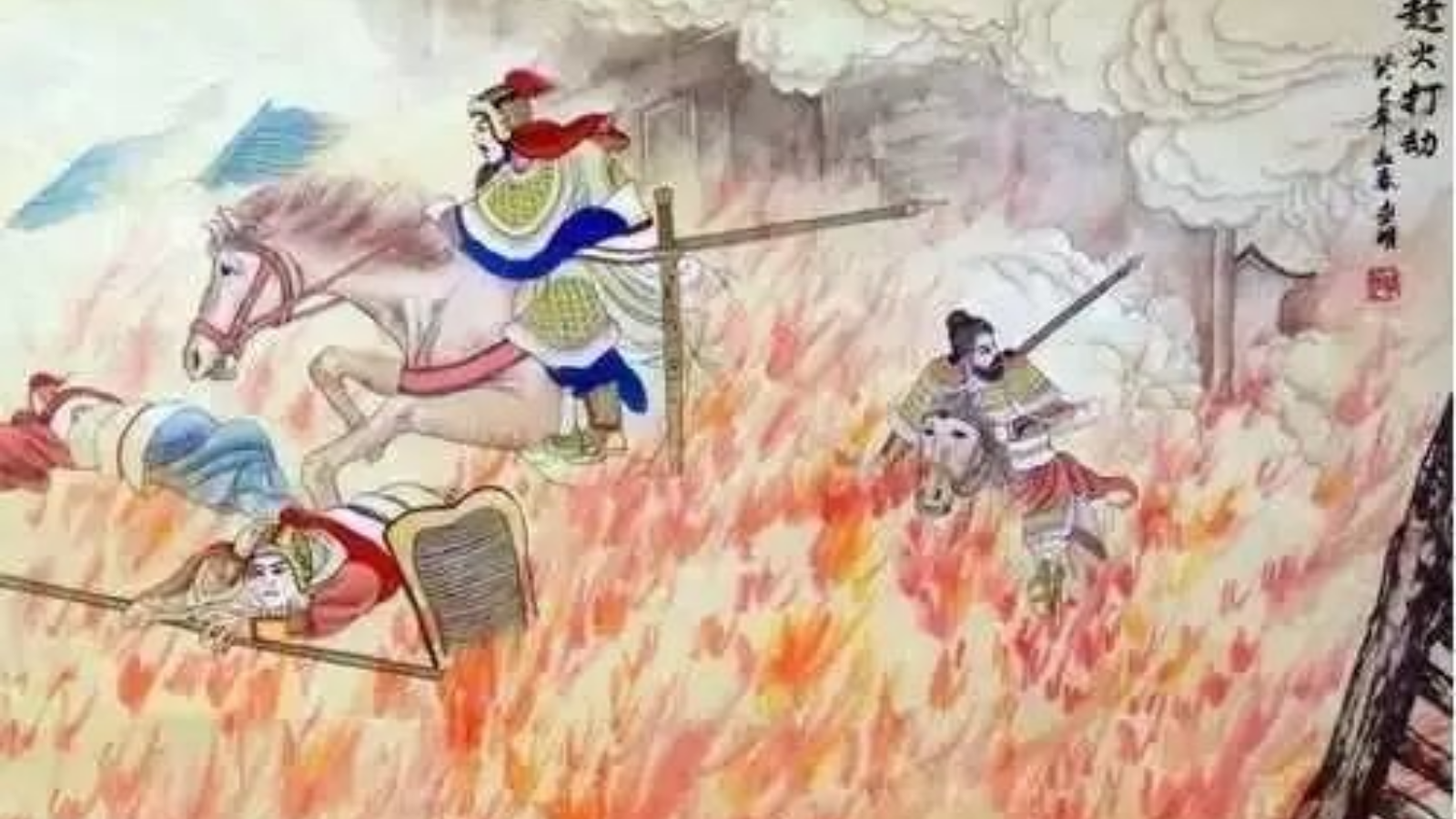 В эпоху Троецарствия правитель северного царства Вэй Цао Цао сошелся со своим противником Сунь Цюанем, владевшим Южным Китаем в местечке Красная Стена на реке Янцзы. Полководец третьего царства Шу Чжугэ Лян сумел убедить неопытного в сражениях на воде Цао Цао сцепить свои корабли так, чтобы воины Цао Цао могли бы переправиться по ним на другой берег. Между тем Сунь Цюань, воспользовавшись южным ветром, поджег корабли Цао Цао и уничтожил весь вэйский флот. Что же касается Чжугэ Ляна, то он вместе с правителем Шу Лю Бэем наблюдал за битвой и пожаром с противоположного берега Янцзы, после чего правитель Шу смог воспользоваться плодами этой битвы для укрепления своих позиций.